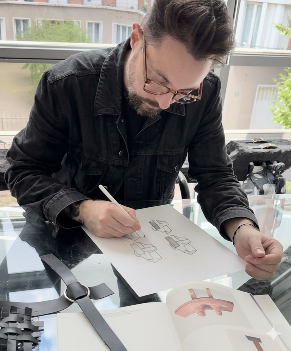 He bridges craftsmanship, technology, and critical thought. His studio practice reflects a continuous search for balance, where raw matter meets refined form, and where creation becomes both gesture and reflection.